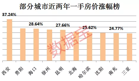 此数据虽然与任泽平年初的300万亿元有较大差距,但与第一太平戴维斯及媒体在2017年估算数据接近。最新数据显示,与两年前相比,70个大中城市中有50多个城市新建商品住宅均价同比涨幅超过10%,西安、贵阳、海口、徐州等20多个城市涨幅超过20%。