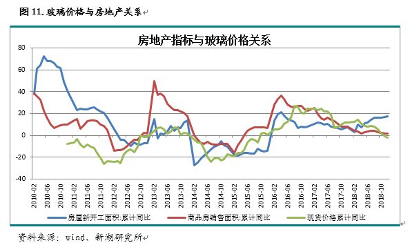 导读 在比较房地产一系列指标与玻璃现货价格的关系中发现,商品房销售面积与新开工面积与其关联度最大,商品房同步相关性达到0 6518,R2达到0 424