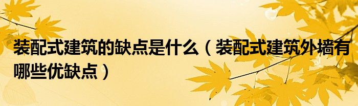 导读 大家好,小编慧慧来为大家解答以上的问题。装配式建筑的缺点是什么,装配式建筑外墙有哪些优缺点很多人还不知道,现在让我们一起来看看吧!