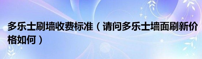 多乐士刷墙收费标准(请问多乐士墙面刷新价格如何)