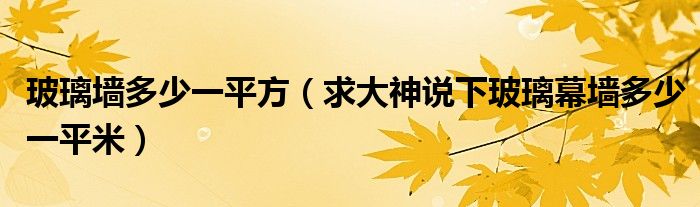 玻璃墙多少一平方(求大神说下玻璃幕墙多少一平米)