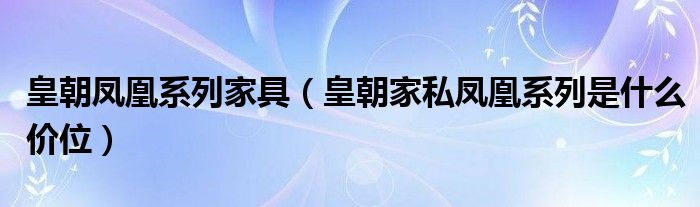 皇朝凤凰系列家具(皇朝家私凤凰系列是什么价位)