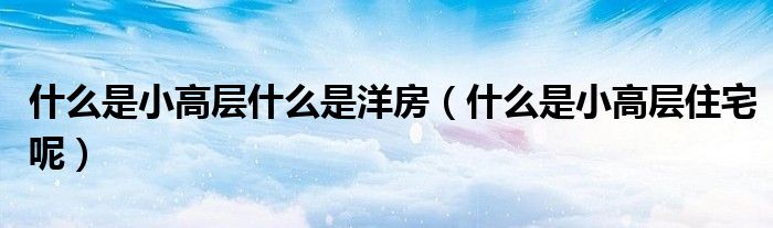 什么是小高层什么是洋房(什么是小高层住宅呢)
