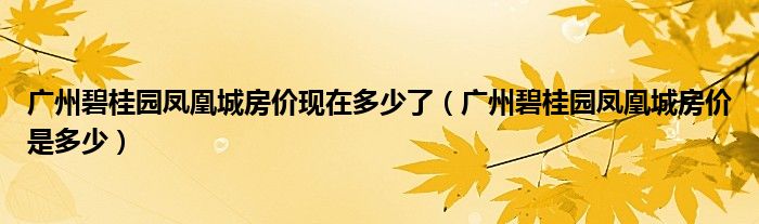 导读 大家好,小编慧慧来为大家解答以上的问题。广州碧桂园凤凰城房价现在多少了,广州碧桂园凤凰城房价是多少很多人还不知道,现在让我们一起来