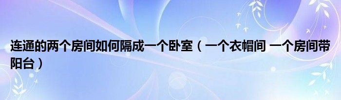 导读 大家好,小编慧慧来为大家解答以上的问题。连通的两个房间如何隔成一个卧室,一个衣帽间 一个房间带阳台很多人还不知道,现在让我们一起来
