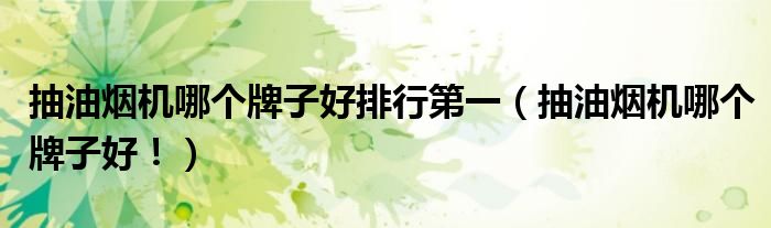 抽油烟机哪个牌子好排行第一(抽油烟机哪个牌子好!)