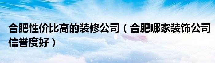 合肥性价比高的装修公司(合肥哪家装饰公司信誉度好)