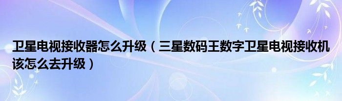 卫星电视接收器怎么升级(三星数码王数字卫星电视接收机该怎么去升级)