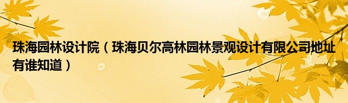 导读 大家好,小编慧慧来为大家解答以上的问题。珠海园林设计院,珠海贝尔高林园林景观设计有限公司地址有谁知道很多人还不知道,现在让我们一起