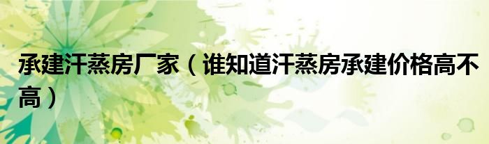 承建汗蒸房厂家(谁知道汗蒸房承建价格高不高)