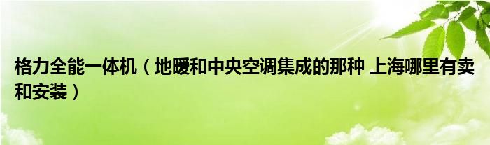 格力全能一体机(地暖和中央空调集成的那种 上海哪里有卖和安装)