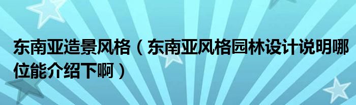 导读 大家好,小编慧慧来为大家解答以上的问题。东南亚造景风格,东南亚风格园林设计说明哪位能介绍下啊很多人还不知道,现在让我们一起来看看吧