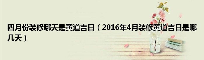 四月份装修哪天是黄道吉日(2016年4月装修黄道吉日是哪几天)