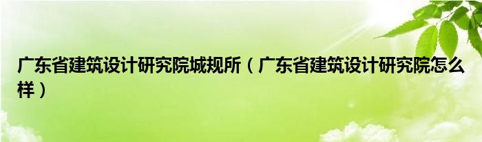 广东省建筑设计研究院城规所(广东省建筑设计研究院怎么样)