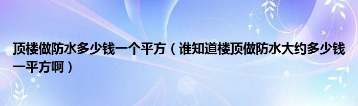 顶楼做防水多少钱一个平方(谁知道楼顶做防水大约多少钱一平方啊)