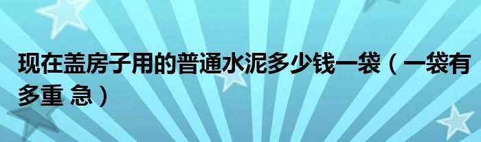 导读 大家好,小编慧慧来为大家解答以上的问题。现在盖房子用的普通水泥多少钱一袋,一袋有多重 急很多人还不知道,现在让我们一起来看看吧!1