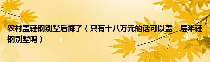农村盖轻钢别墅后悔了(只有十八万元的话可以盖一层半轻钢别墅吗)