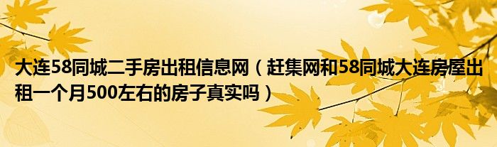 大连58同城二手房出租信息网(赶集网和58同城大连房屋出租一个月500左右的房子真实吗)