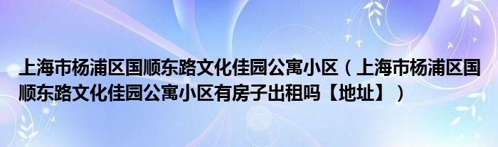 上海市杨浦区国顺东路文化佳园公寓小区(上海市杨浦区国顺东路文化佳园公寓小区有房子出租吗【地址】)