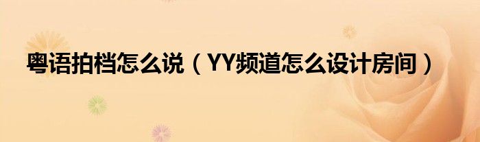 大家好,小编慧慧来为大家解答以上的问题。粤语拍档怎么说,YY频道怎么设计房间很多人还不知道,现在让我们一起来看看吧!