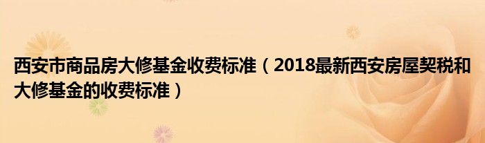 西安市商品房大修基金收费标准(2018最新西安房屋契税和大修基金的收费标准)