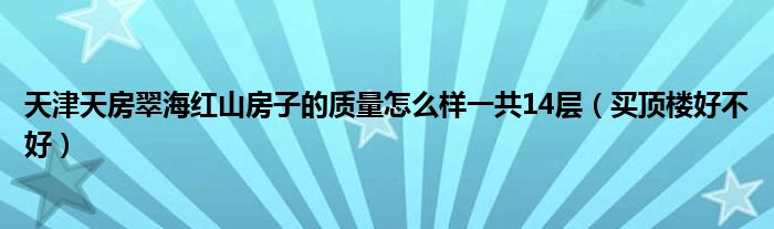 导读 大家好,小编慧慧来为大家解答以上的问题。天津天房翠海红山房子的质量怎么样一共14层,买顶楼好不好很多人还不知道,现在让我们一起来看看