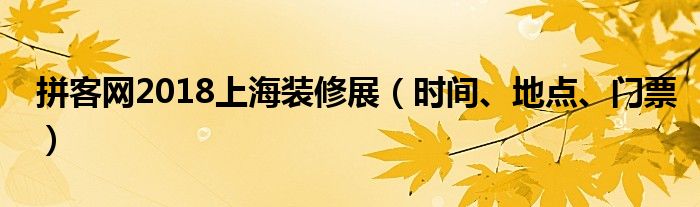 大家好,小编慧慧来为大家解答以上的问题。拼客网2018上海装修展,时间、地点、门票很多人还不知道,现在让我们一起来看看吧!