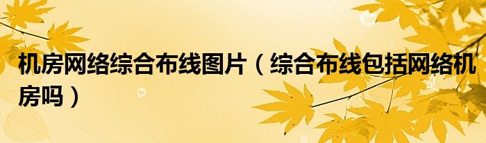 导读 大家好,小编慧慧来为大家解答以上的问题。机房网络综合布线图片,综合布线包括网络机房吗很多人还不知道,现在让我们一起来看看吧!1、不