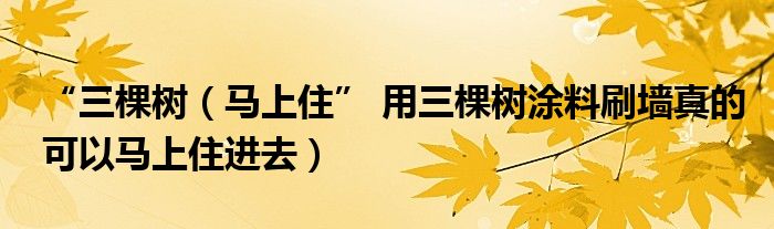 “三棵树(马上住” 用三棵树涂料刷墙真的可以马上住进去)