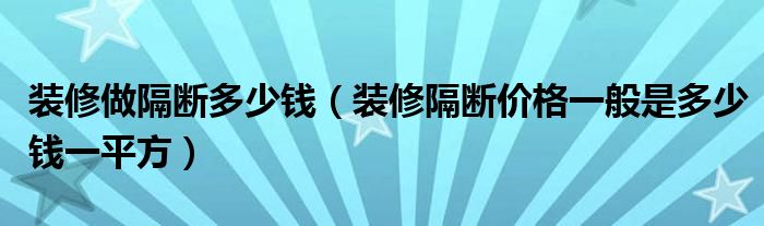 装修做隔断多少钱(装修隔断价格一般是多少钱一平方)