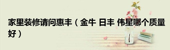 家里装修请问惠丰(金牛 日丰 伟星哪个质量好)