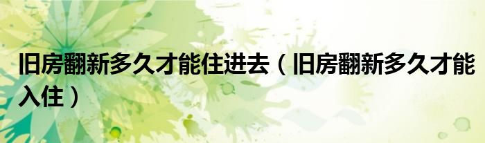 旧房翻新多久才能住进去(旧房翻新多久才能入住)
