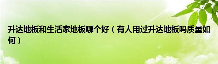 升达地板和生活家地板哪个好(有人用过升达地板吗质量如何)