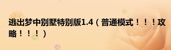 逃出梦中别墅特别版1.4(普通模式!!!攻略!!!)