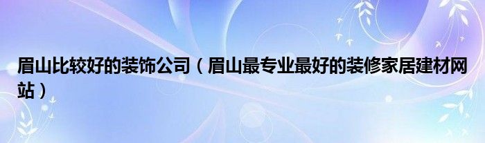 眉山比较好的装饰公司(眉山最专业最好的装修家居建材网站)