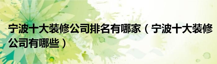 导读 大家好,小编慧慧来为大家解答以上的问题。宁波十大装修公司排名有哪家,宁波十大装修公司有哪些很多人还不知道,现在让我们一起来看看吧!