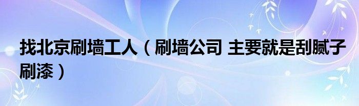 导读 大家好,小编慧慧来为大家解答以上的问题。找北京刷墙工人,刷墙公司 主要就是刮腻子刷漆很多人还不知道,现在让我们一起来看看吧!1、a、