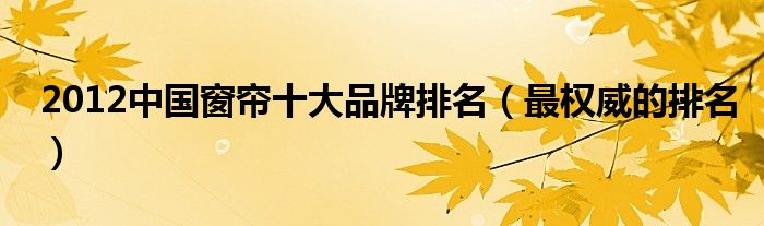 大家好,小编慧慧来为大家解答以上的问题。2012中国窗帘十大品牌排名,最权威的排名很多人还不知道,现在让我们一起来看看吧!