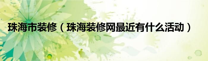 大家好,小编慧慧来为大家解答以上的问题。珠海市装修,珠海装修网最近有什么活动很多人还不知道,现在让我们一起来看看吧!