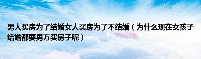 男人买房为了结婚女人买房为了不结婚(为什么现在女孩子结婚都要男方买房子呢)