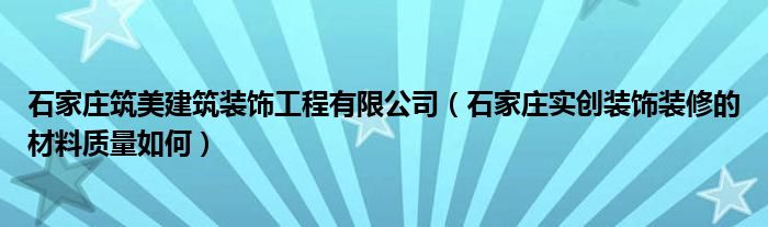 石家庄筑美建筑装饰工程有限公司(石家庄实创装饰装修的材料质量如何)