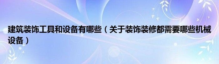 建筑装饰工具和设备有哪些(关于装饰装修都需要哪些机械设备)