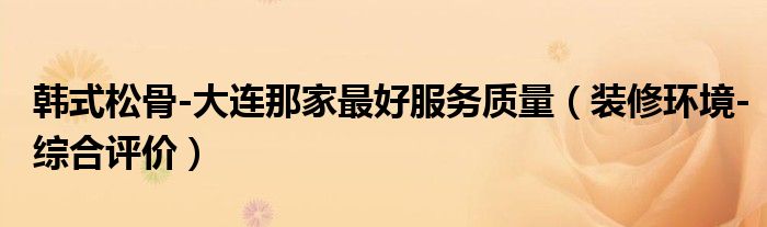 导读 大家好,小编慧慧来为大家解答以上的问题。韩式松骨-大连那家最好服务质量,装修环境-综合评价很多人还不知道,现在让我们一起来看看吧!1