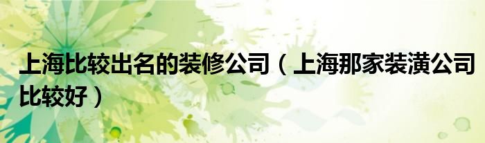 上海比较出名的装修公司(上海那家装潢公司比较好)
