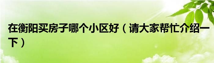 在衡阳买房子哪个小区好(请大家帮忙介绍一下)