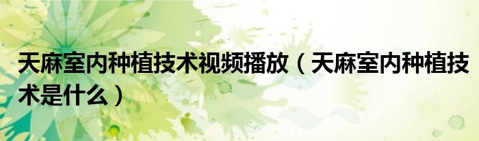 天麻室内种植技术视频播放(天麻室内种植技术是什么)