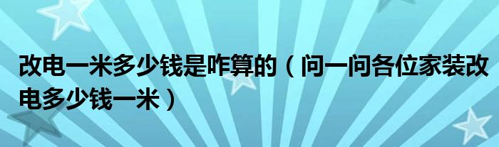 导读 大家好,小编慧慧来为大家解答以上的问题。改电一米多少钱是咋算的,问一问各位家装改电多少钱一米很多人还不知道,现在让我们一起来看看吧
