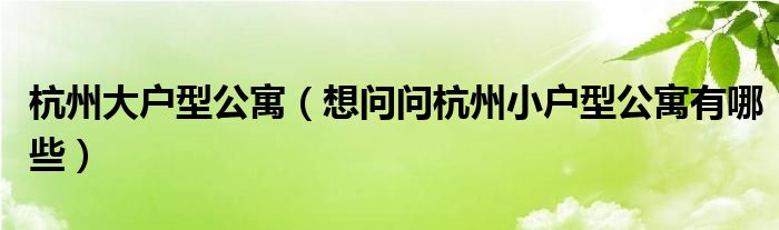 杭州大户型公寓(想问问杭州小户型公寓有哪些)