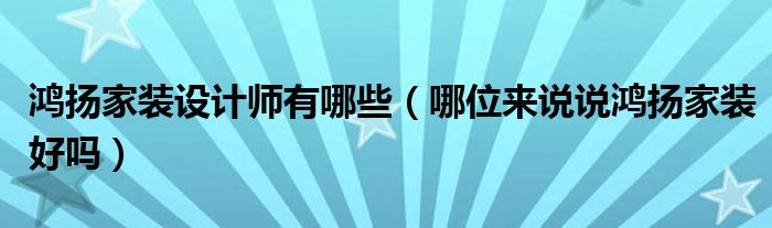 鸿扬家装设计师有哪些(哪位来说说鸿扬家装好吗)