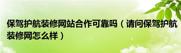 保驾护航装修网站合作可靠吗(请问保驾护航装修网怎么样)